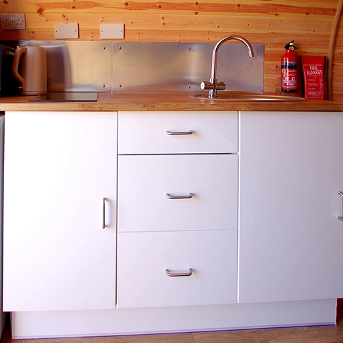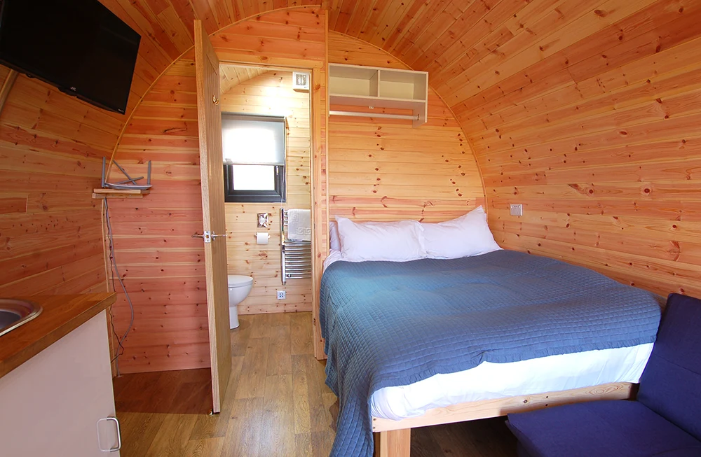 Your pod is an open plan layout. Mini kitchenette, living space & double bed with en suite. You have your own decked area on which you can enjoy your meals and drinks in the beautiful views.