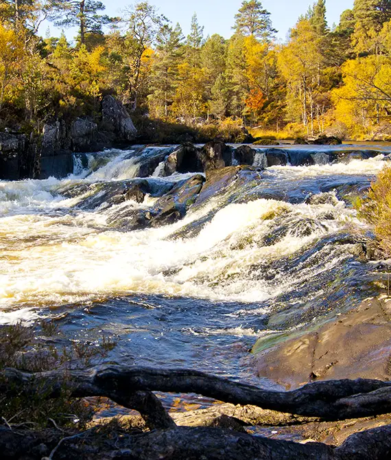 The Glen Affric location of Dog Falls attracts visitors because of its impressive waterfall and accessible woodland paths. A circular path starting at the car park takes visitors through forest trails and riverfront paths which provide beautiful natural views with peaceful surroundings. The location provides accessible fun for families who can use stop at various resting areas to take in the beautiful views.